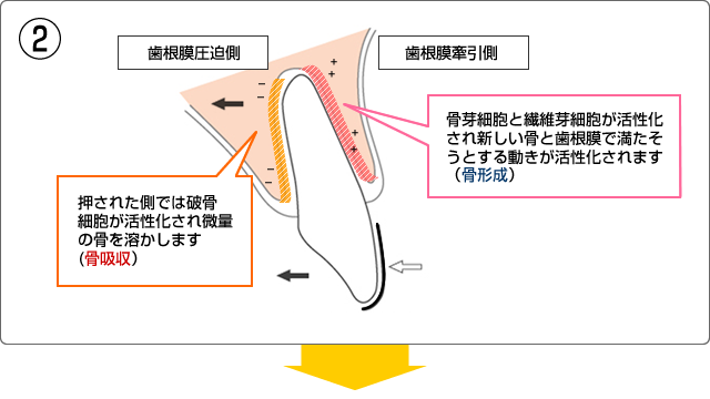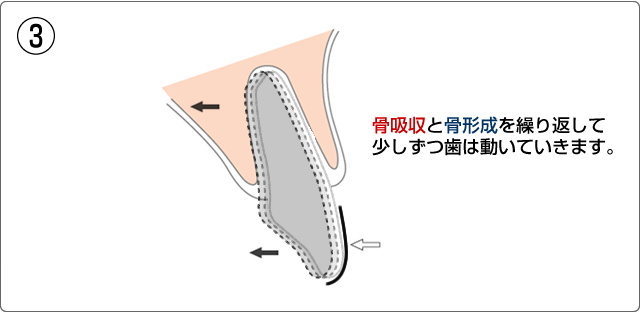 骨吸収と骨形成を繰り返しながら、歯は動いていきます